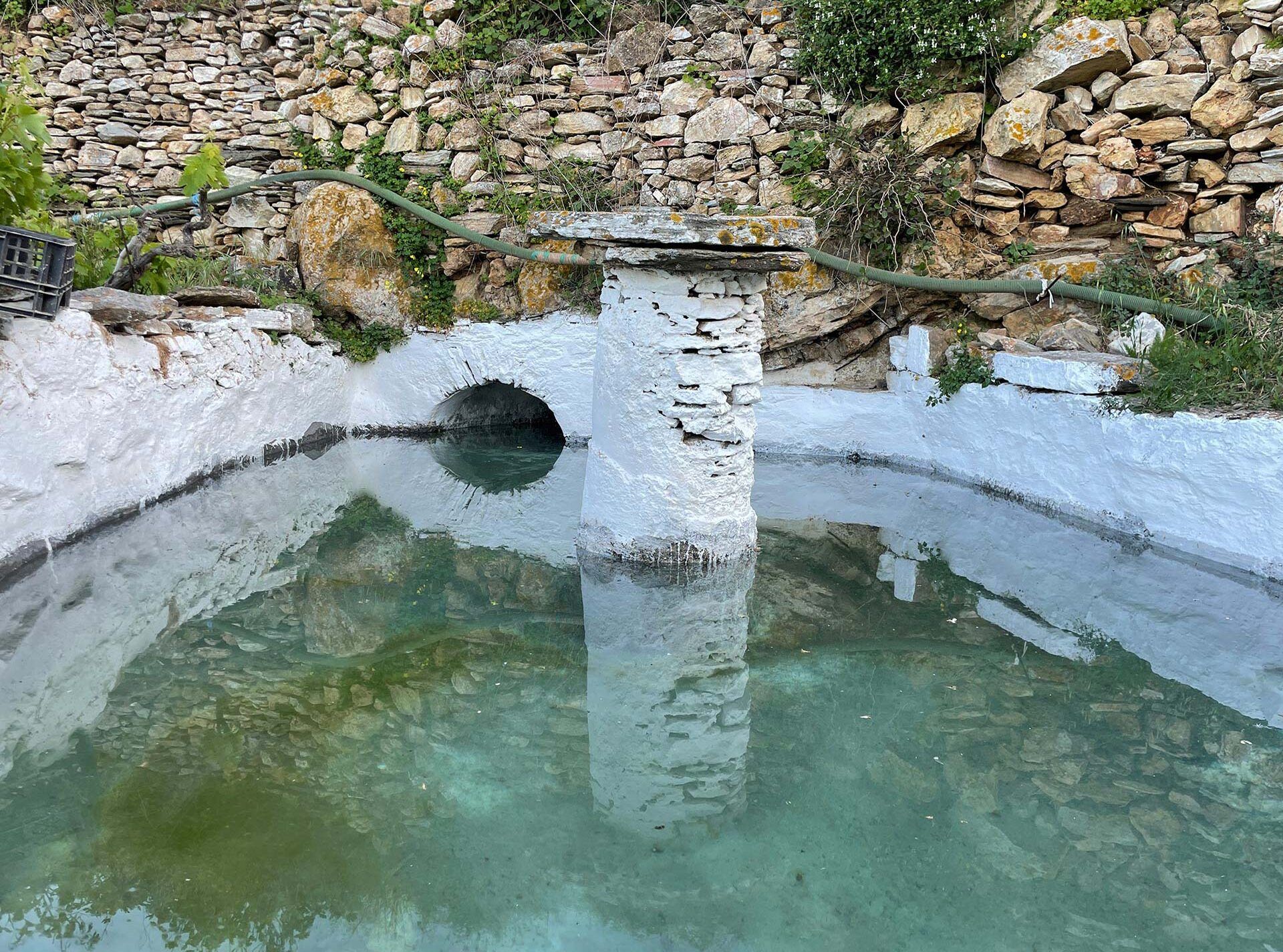 Κι επειδή «πενία τέχνας κατεργάζεται», οι νησιώτες για την επιβίωσή τους έπρεπε να βρουν τρόπους να «σώσουν το νερό». Με μόνα εφόδια την ανάγκη για επιβίωση, το μυαλό και τη φύση, με απλότητα και σοφία εμπνεύστηκαν τρόπους για την ανεύρεση, τη συλλογή και την αξιοποίηση του πόρου αυτού, με απόλυτο σεβασμό και ισορροπία. Εκμεταλλεύτηκαν τα υπόγεια νερά από τον υδροφόρο ορίζοντα (υπέδαφος), τα επιφανειακά νερά (ρυάκια, φυσικές πηγές) από την επιφάνεια της γης καθώς και τα όμβρια ύδατα από τις βροχοπτώσεις με τη συστηματική συλλογή τους. Έτσι, δημιούργησαν πηγάδια για άντληση του υπόγειου νερού, κρήνες για εκμετάλλευση του επιφανειακού νερού από φυσικές πηγές, φράγματα για συλλογή του επιφανειακού νερού, νερόμυλους κοντά σε ρέματα ή καταρράκτες. Ενίοτε τις κατασκευές αυτές συνόδευαν ανοιχτές στέρνες (χαβούζες) και γούρνες για τα ζώα.